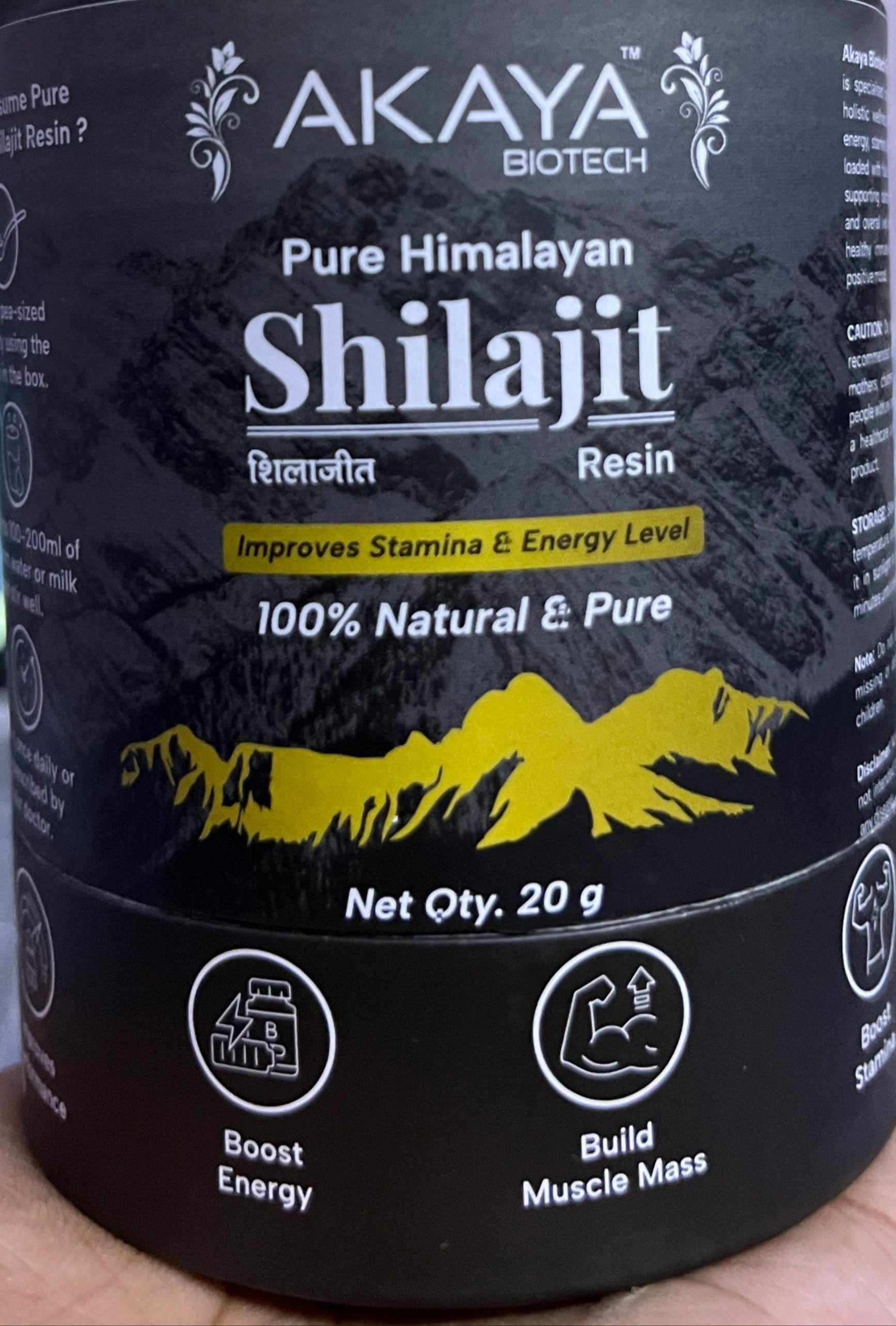 Akaya Biotech Pure Himalayan Shilajit Resin โ 20g | 100% Natural & Pure | In-House Lab Tested | Boosts Stamina, Strength & Energy | Sourced from Himalayas
